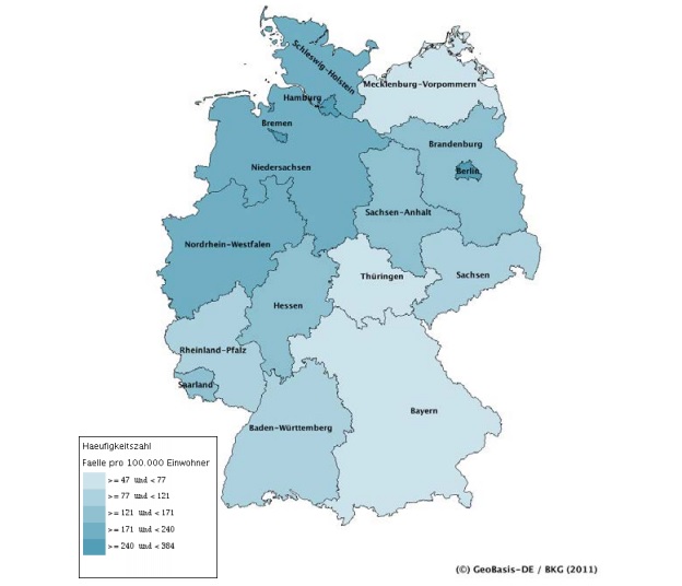 Mit 39.057 Fällen insgesamt ist Nordrhein-Westfalen Spitzenreiter im gesamten Bundesgebiet. Rund 218 Einbrüche pro 100.000 Einwohner beschäftigten hier die Behörden. In Bremen und Hamburg sowie Berlin sind es bezogen auf 100.000 Einwohner allerdings noch deutlich mehr. In Bremen waren es rund 384 Fälle, Hamburg kam auf etwa 319 und Berlin auf 240. Die Aufklärungsquote dieser drei Stadtstaaten liegt bei unter 10 Prozent.